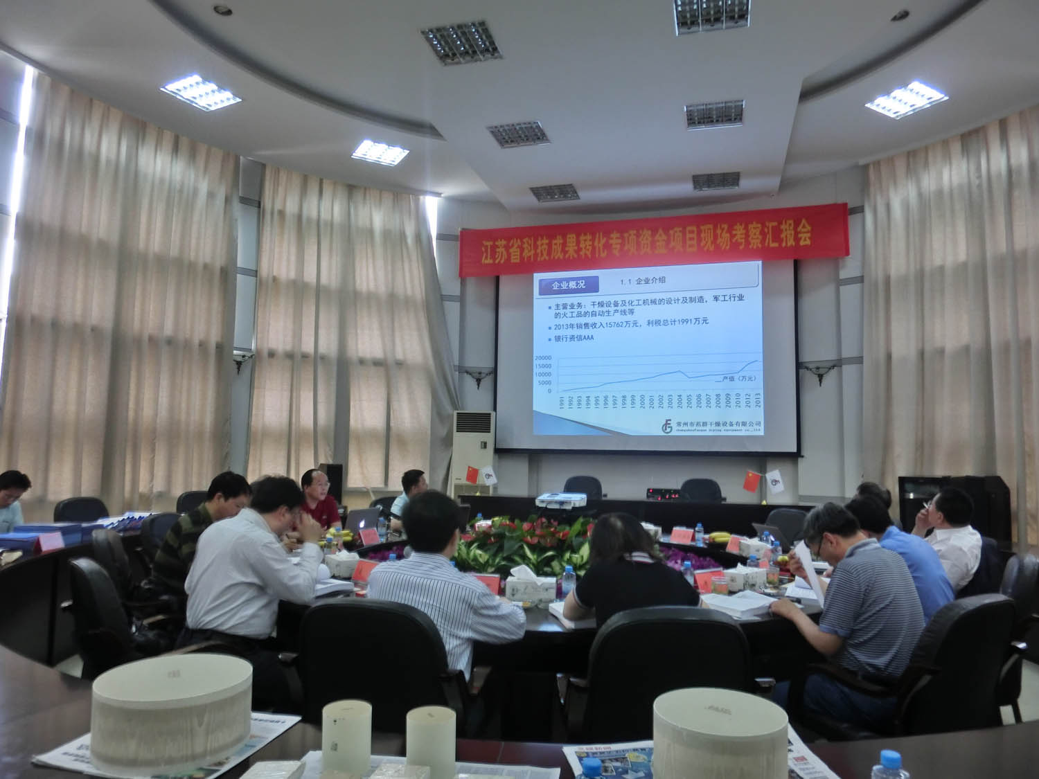 5月22日上午,由江蘇省科技廳、常州市科技局、新北區(qū)科技局領導和專家組成的專家組來到我公司,在我公司會議室召開了“江蘇省科技成果轉化專項資金項目現(xiàn)場考察匯報會”,會上公司董事長范炳洪先生作了專題匯報,并重點介紹了這次申報項目的具體情況,陪同領導和專家實地察看了公司研發(fā)中心、實驗室、生產車間等;各位專家詳細聽取了匯報,并認真了解申報項目中的產品生產和運行情況,詢問有關項目產品的一些問題。專家組成員肯定了我公司的資料準備充分,所報項目也得到專家的一致認可。