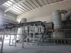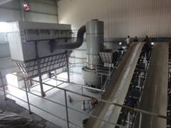 由常州市范群干燥設(shè)備有限公司生產(chǎn)的2萬(wàn)噸/年白碳黑干燥裝置日前在浙江橫店通過(guò)驗(yàn)收,該裝置由燃煤熱風(fēng)系統(tǒng)、加料系統(tǒng)、閃蒸干燥系統(tǒng)、布袋收塵系統(tǒng)、自動(dòng)包裝系統(tǒng)等組成。針對(duì)白碳黑濾餅含水量高、耐溫高及產(chǎn)品比重小的特點(diǎn),熱源采用了間接式燃煤熱風(fēng)爐,熱風(fēng)溫度高達(dá)500℃以上,進(jìn)料系統(tǒng)采用皮帶輸送和螺旋加料相結(jié)合,干燥主機(jī)采用直徑2米的閃蒸干燥機(jī),直接配套布袋除塵器收集產(chǎn)品,并由自動(dòng)包裝機(jī)完成產(chǎn)品包裝。整套裝置自動(dòng)化程度高,在人員配置及噸耗等重要指標(biāo)達(dá)到了設(shè)計(jì)水平。