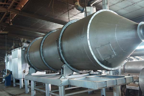 工業(yè)烘干設(shè)備屬于礦山機(jī)械,一般多為大、中型機(jī)械,其熱源來自燃燒裝置,采用順流式加熱方式。因此需要烘干的物料,從進(jìn)料箱、進(jìn)料溜進(jìn)入筒體,即被螺旋抄板推向后。由于烘干機(jī)傾斜放置,物料一方面在重力和回轉(zhuǎn)作用下流向后端,另一方面物料被抄板反復(fù)抄起,帶至上端再不斷地?fù)P撒下來,使物料在筒內(nèi)形成均勻的幕簾,充分與筒內(nèi)的熱氣流進(jìn)行熱交換,由于物料反復(fù)揚(yáng)撒,所含的水分逐漸被烘干,從而達(dá)到烘干的目的。